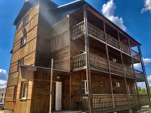 Расположен вдали от цивилизации, но есть интернет и Wi-Fi. Новая дорога ведёт к отелю. Рядом чистая река. Мангал предоставляется с дровами.